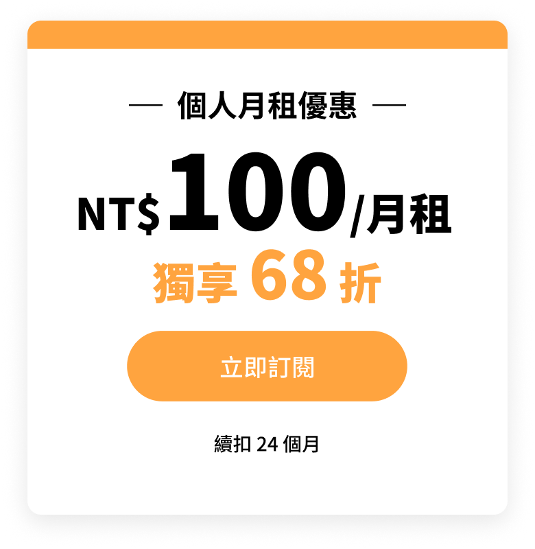 購買「個人標準音質年繳方案」,可享有 KKBOX 最高 320 Kbps 標準音質服務,訂閱期間將以每月 NT$100 續扣 24 個月,每月享相較原價便宜 NT$49 之折扣,24 個月內期間無法退租,第 25 個月起每月續扣 NT$139。本優惠方案不包含 KKTV 的服務使用,訂閱前請特別留意!