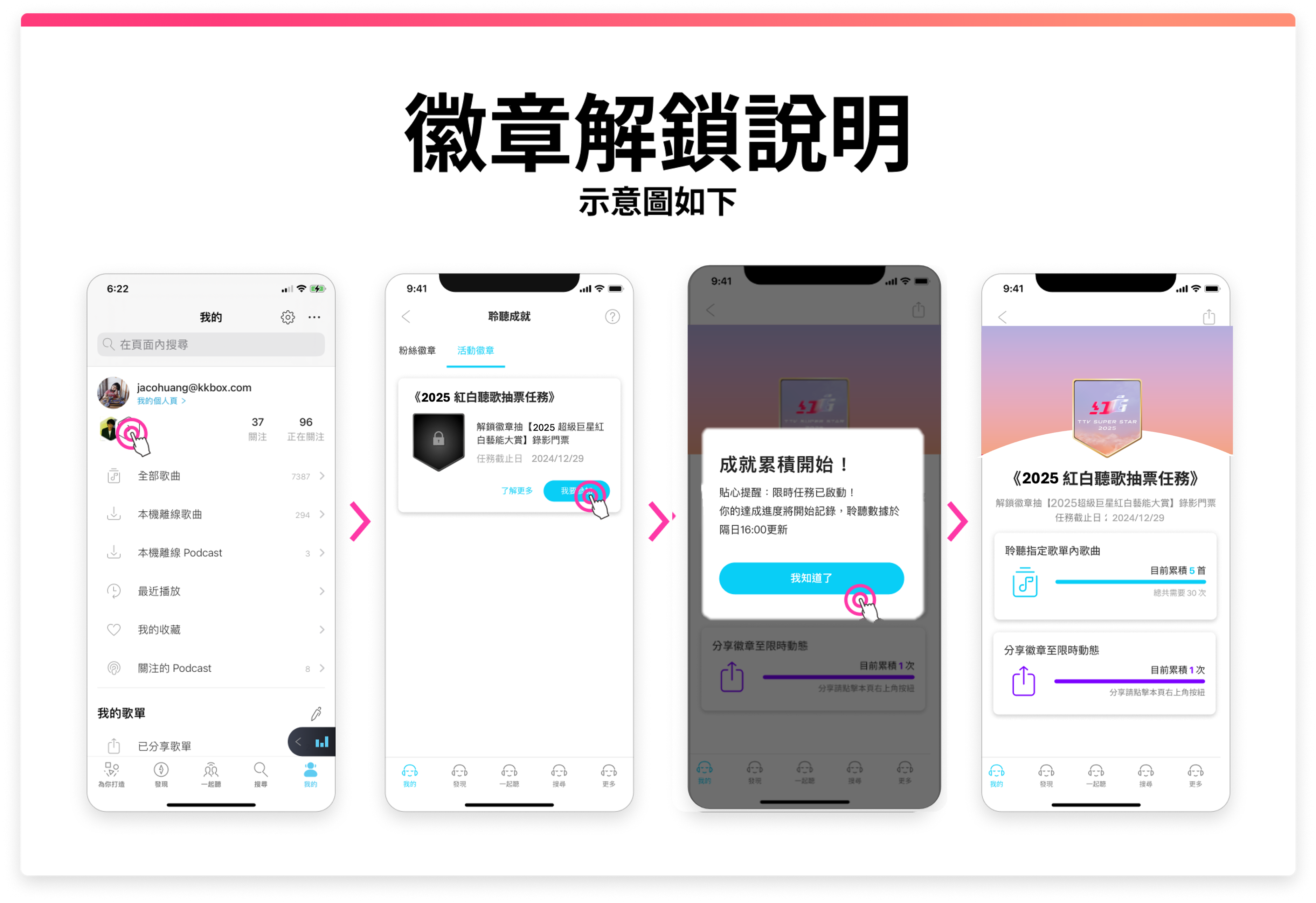 1. 請依照本活動頁載明之「活動方式」參加活動,參與本活動即同意 KKBOX 活動徽章使用條款。