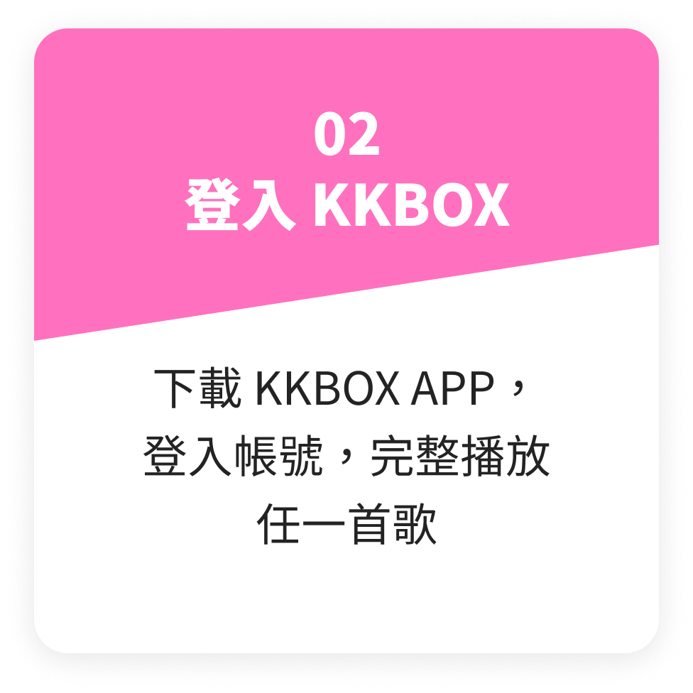 中華電信用戶於活動期間於中華電信全通路申請 KKBOX 指定方案,並登入 KKBOX 完整播放任一首歌曲,且於抽獎當下仍須為有效付費狀態,始具備抽獎資格。