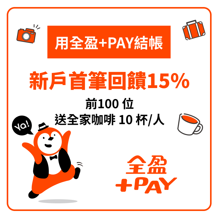 使用全盈+PAY結帳(註冊說明)前 100 位送全家咖啡10杯/人(已額滿),新戶首筆15%最高30%回饋(說明點我)