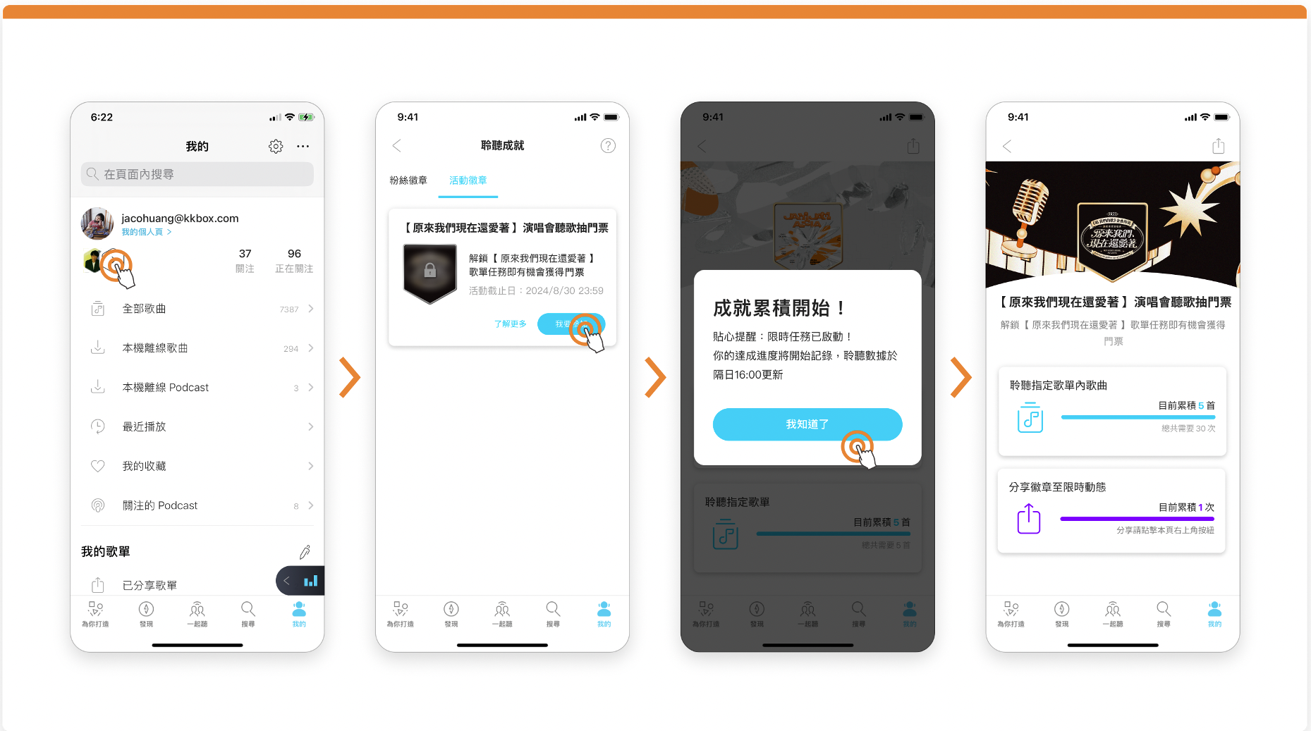 1. 請依照本活動頁載明之「活動方式」參加活動,參與本活動即同意 KKBOX 活動徽章使用條款。