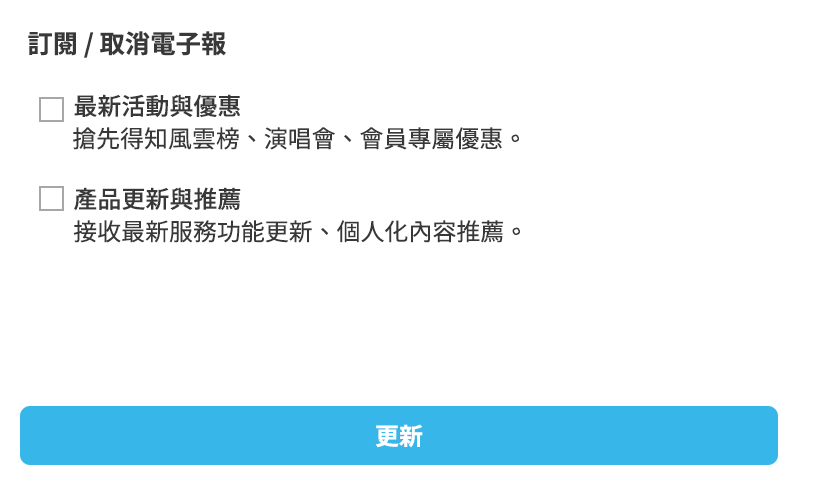 - 參加者須於 2020 年 04 月20 日 前填寫完成「個人資料更新」並打開「最新活動與優惠」與「產品更新與推薦」電子報訂閱通知,即擁有抽獎資格,如因提供資料不全、不正確或未依照本活動辦法參加活動等之事由,將導致無法參加活動或失去抽獎資格。
