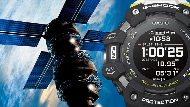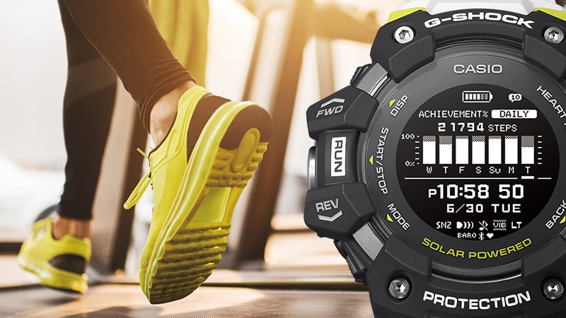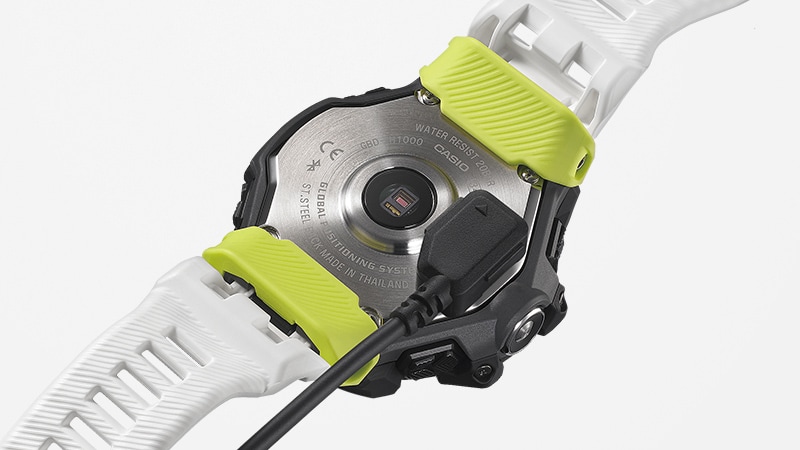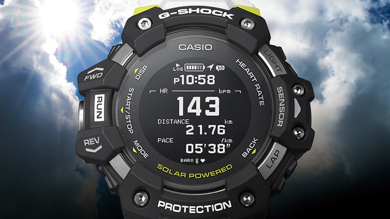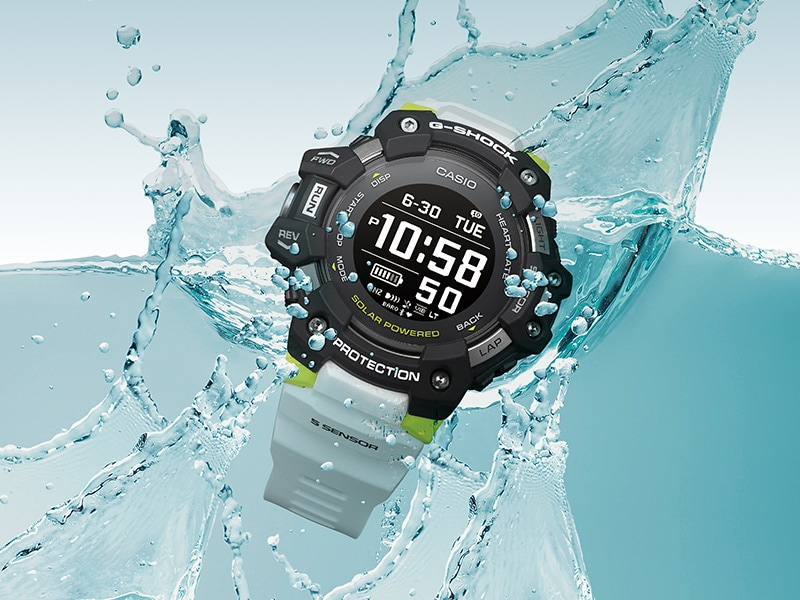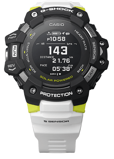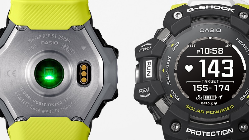 G-SHOCK 首款搭載心率偵測錶款 GBD-H1000,搭載 GPS 功能,同步擁有耐衝擊構造和防水 200 米。透過藍牙連結智慧型手機,讓你可輕鬆管理各種測量數據,如:心率、燃燒卡路里、距離、配速、最大攝氧量(VO2Max)…等。