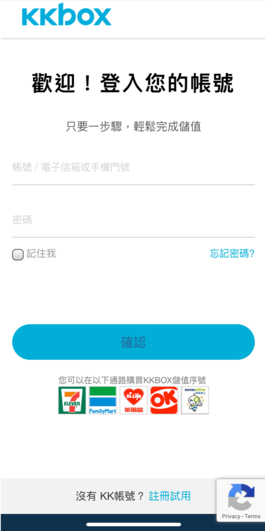 先登入 KKBOX 帳號,如果還沒註冊過,請點擊下方「註冊試用」