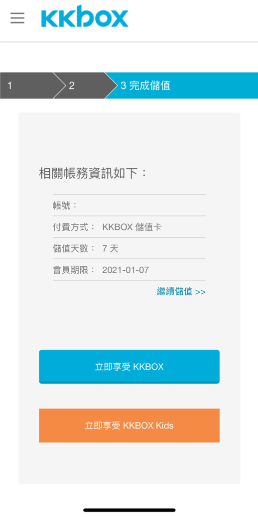 成功免費取得 10天 KKBOX 體驗序號,快來跟我們一起聽音樂吧!Let's music!