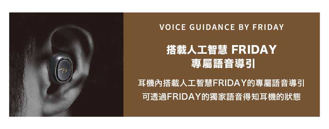 搭載人工智慧專屬語音導引,透過 FRIDAY 系統得知耳機狀態