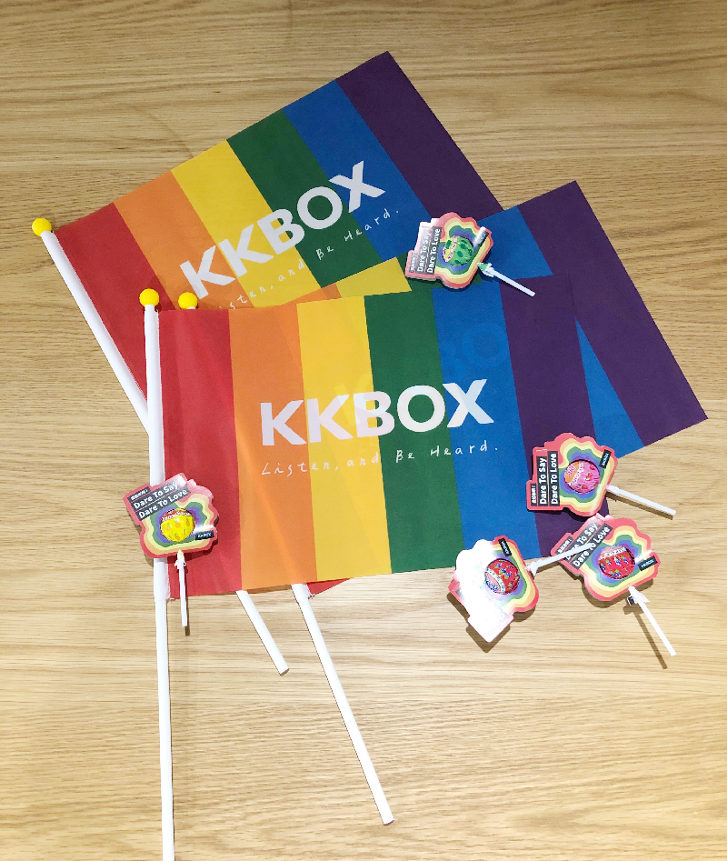 10/31 遊行現場遇到 KKBOX 的隊伍(北路線橘色大隊),並對我們高喊「#DareToLove」就可以獲得限量彩虹小禮喔!
