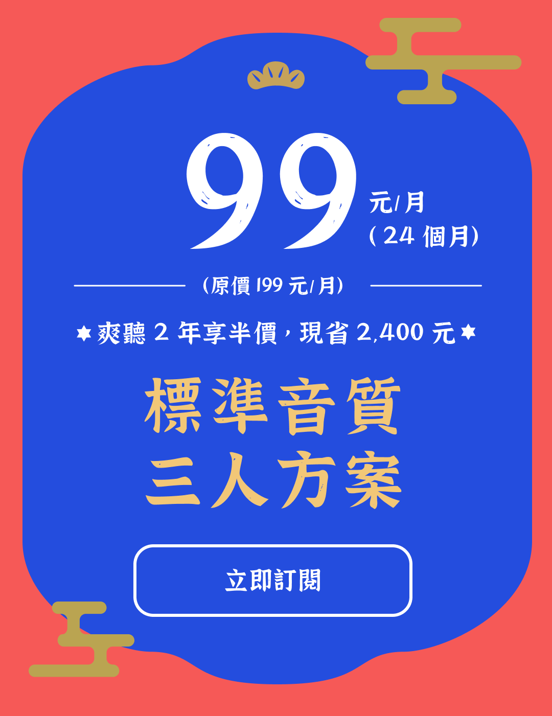 3. 選購本方案即可享有 KKBOX 標準音質月租型服務,訂閱期間將以每月 NT$99 續扣 24 個月,每月享相較原價便宜 NT$100 之折扣,第 25 個月起每月續扣 NT$189;在 24 個月內期間無法退租,須扣款至第 25 個月月費後方可退租